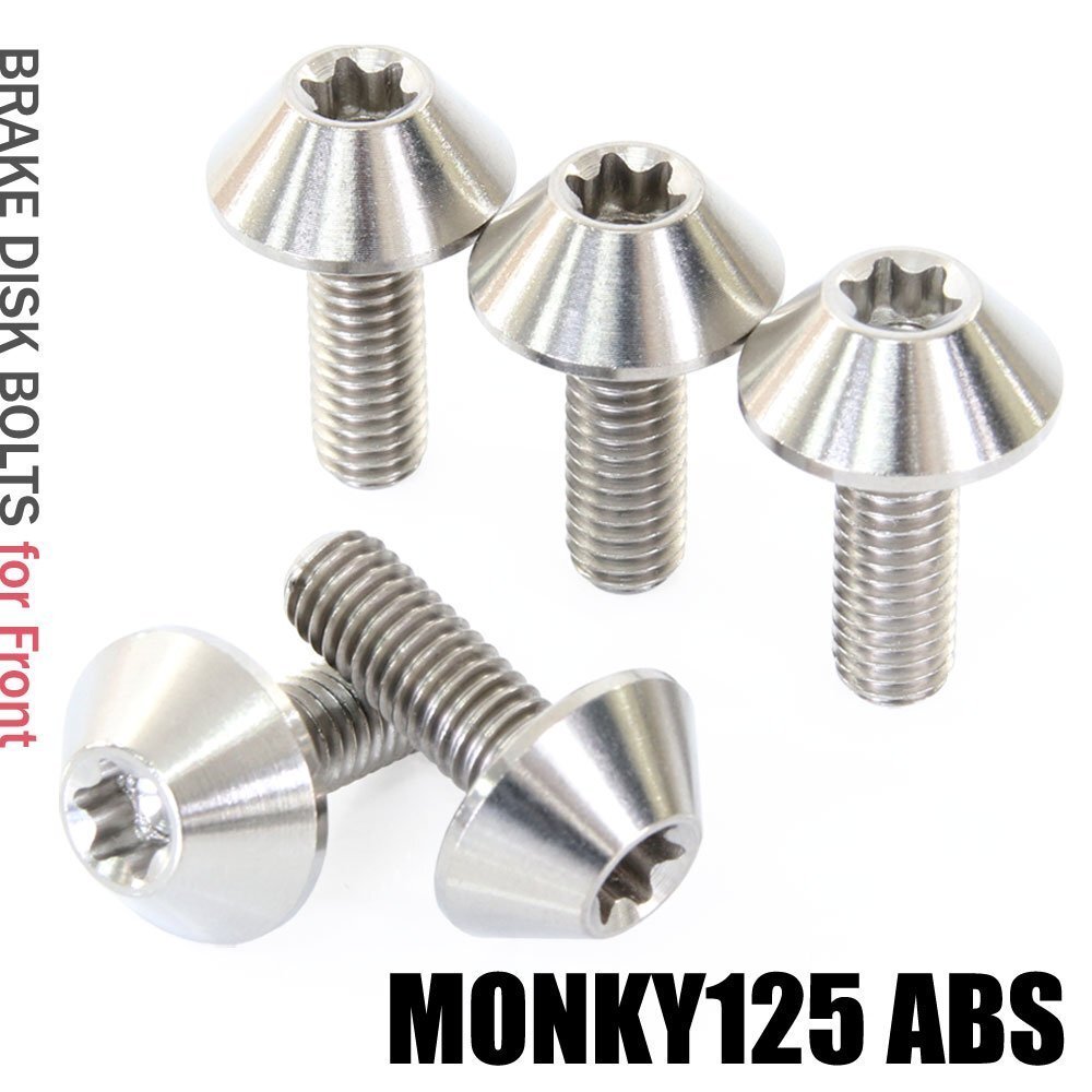 メール便OK!チタンボルト ホンダ モンキー125ABS専用 ブレーキディスクボルト フロント用 5本セット M6×17 P1.00 シルバー 銀色拍卖