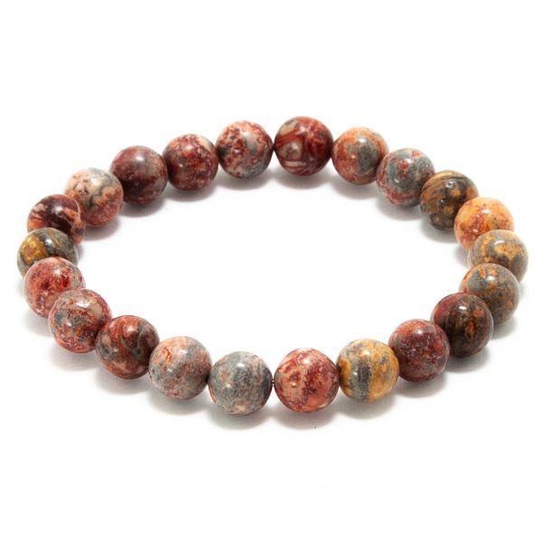 - レッド レオパード スキン ジャスパー ブレスレット赤豹紋様碧玉 8mm珠 16cm 未使用品