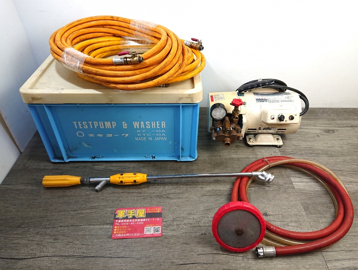 ジャンク品【キョーワ / Kyowa】 TYPE KY-40A テストポンプ高圧洗浄機 100V ※吸い込みNG 商品詳細 品 名 テストポンプ高圧洗浄機 メーカー キョーワ / Kyowa 型 番 TYPE KY-40A 付属品 写真に写っている物が全てです。他に付属品はありません。 状 態 中古品 コメント こちらの商品はジャンク品(不良品)になります。通電はしますが吸い込みがうまく動作しません。ジャンク品(不良品)であることをご承知の上、ご購入お願いします。他、ゲージが劣化の為使用不可です。 細かく確認をしたい方はご来店下さい。 動作にかかわる返品交換はお受けしておりません。 発送方法 ヤマト宅急便 160サイズ〈発送元:千葉県〉 管理番号 240002010035 ●領収証の発行が可能です。 必要な方は購入手続きの際、「ストアからの確認事項」にてチェックしてください。商品に同封致します。 ※宛名の希望がある場合は、要望欄にご記入ください。指定がない場合は落札者様の氏名を記載いたします。 ●同梱希望の場合は各商品落札後、「まとめて購入手続き」ボタンを押してお進みください。 送料は落札後、再計算してご連絡致しますので、そのまま購入手続きを進めて頂き、 クレジット・PayPay払いはそのまま決済お願いします。 コンビニ支払い・銀行振込の場合は、送料の修正を確認後、ご入金お願いします。 ※商品によっては同梱できない商品があります。 ●本来のセット内容と異なる場合がありますの写真をご確認ください。 メーカー仕様に記載のある商品でも写真に写っていない場合(欠品の表記が無い場合も含む)は商品に含まれませんので必ずご確認ください。 ●バッテリー付属商品のバッテリー寿命は分かりかねます。 ●2次流通品のため、メーカー保証はご利用できません。 ●修理対応、サポートは行っておりません。 ●クレーム、返品、返金には一切対応しておりません。
