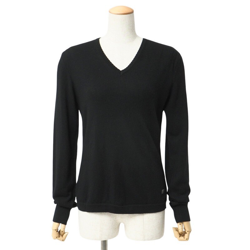 > TJ5988●バーバリー/BURBERRY*ウールニット長袖セーター*Vネック*レディース サイズ2*ブラック