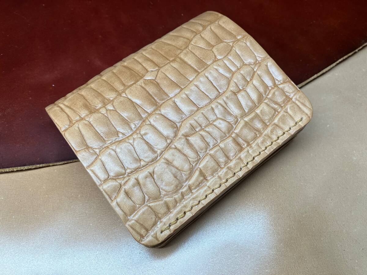 - ■no.1090★ミニウォレットlot.503★ レーデルオガワ社製厚口コードバン★クロコダイル テール型押し ナチュラル