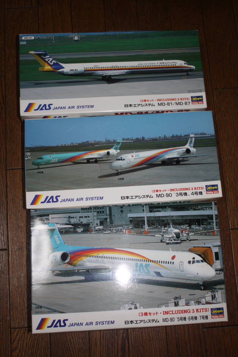 > ハセガワ プラモデル JAS 日本エアシステムMD-81.87 2機セット & MD-90、3.4号機 + 5.6.7号機 未組立 3箱セット