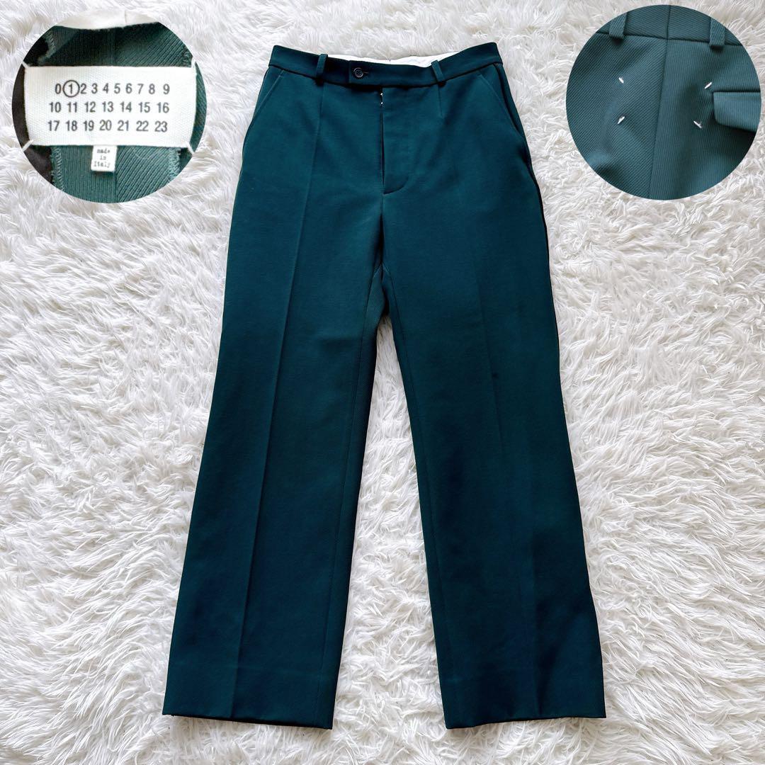 - 21年モデル Maison Margiela メゾンマルジェラ センタープレスパンツ タック 38サイズ 緑 ストレート グリーン イタリア製