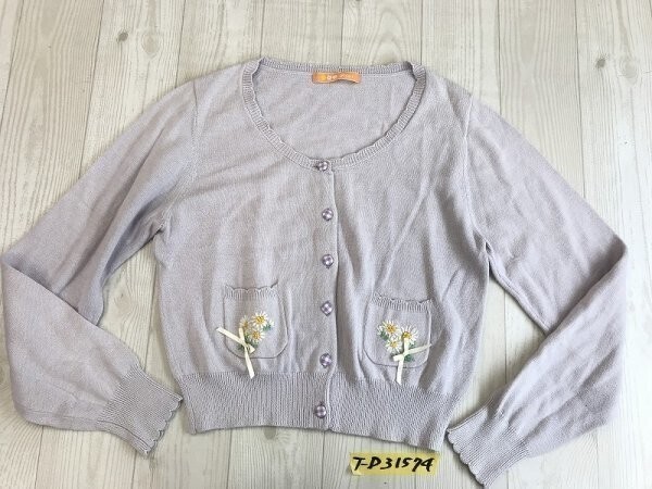- Fint レディース フラワーブーケ刺繍 コットンアクリル ニットカーディガン F ラベンダー