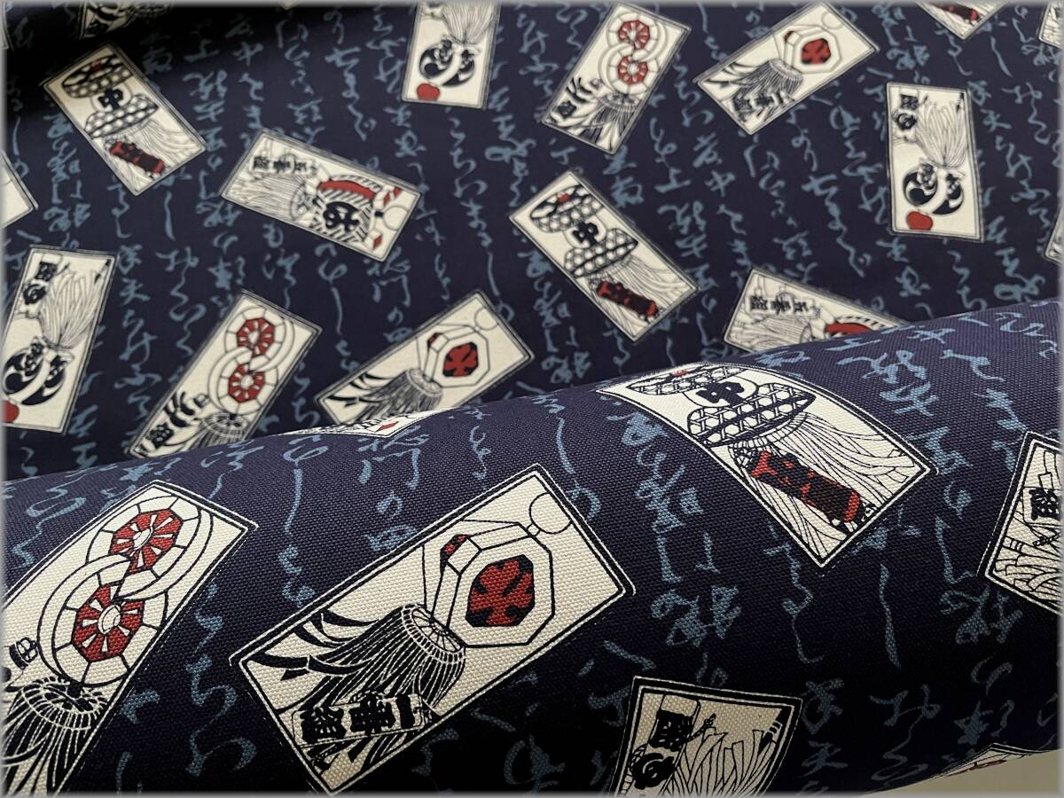 - mets★5m*8号帆布*纏柄*紺生成り*まとい和柄*コットン生地布地2A