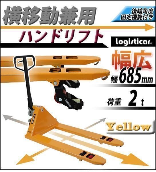 > 送料無料 ハンドリフト 横移動兼用 横移動 幅広 幅685mm 2t 2000kg キャスティング製法 ハンドパレット 黄