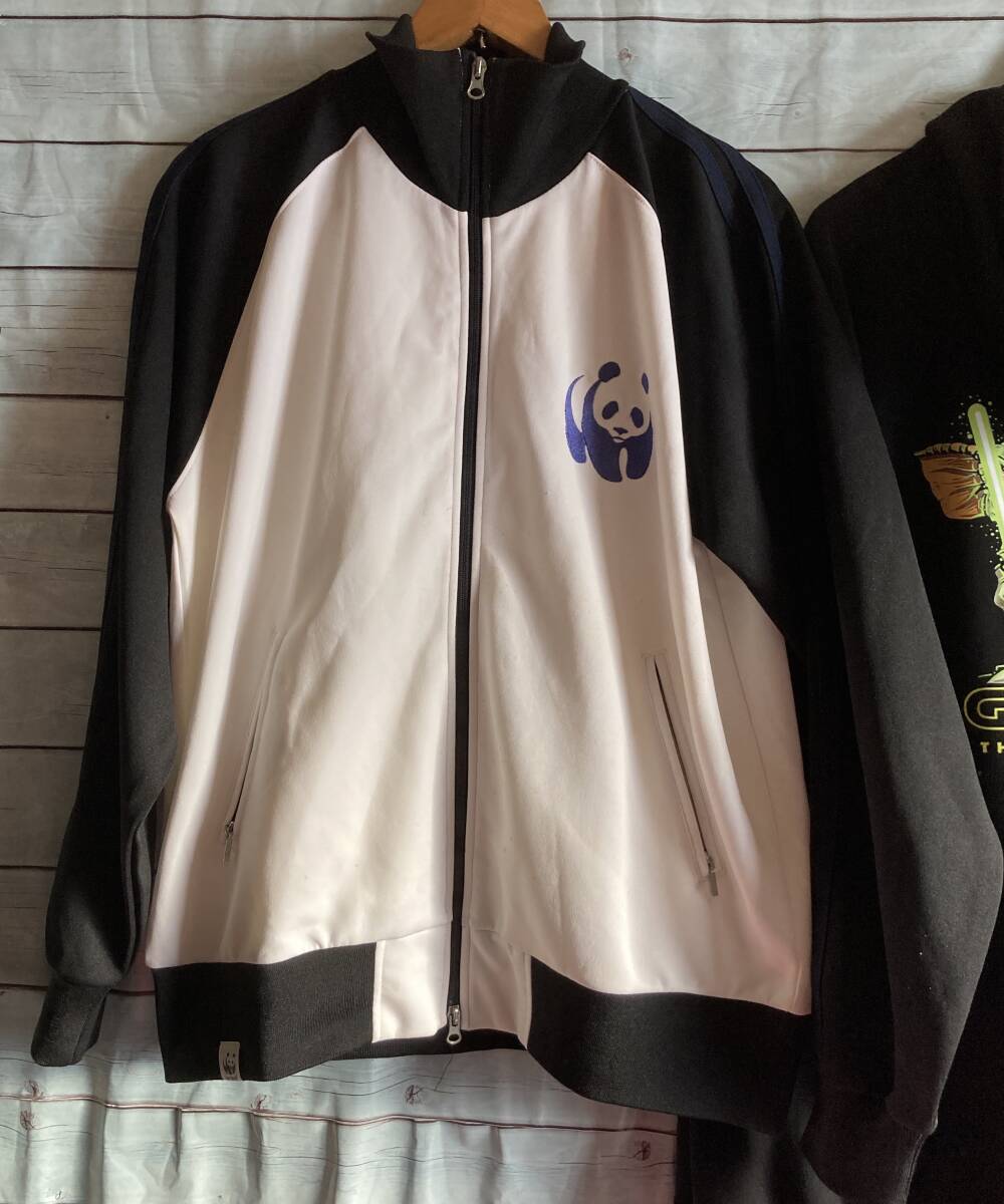 > 限定入荷♪WWF(世界最大の環境自然保護団体)シンボルキャラクター(パンダ)白黒カラーラグランジャージ/トラックジャケット/貴重なLサイズ