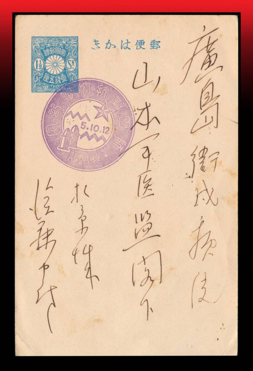 - Z50 朝鮮/特印|青分銅1銭5厘銘無し葉書 特印:師團對抗演習記念/5.10.12/京城統監部内 エンタイア