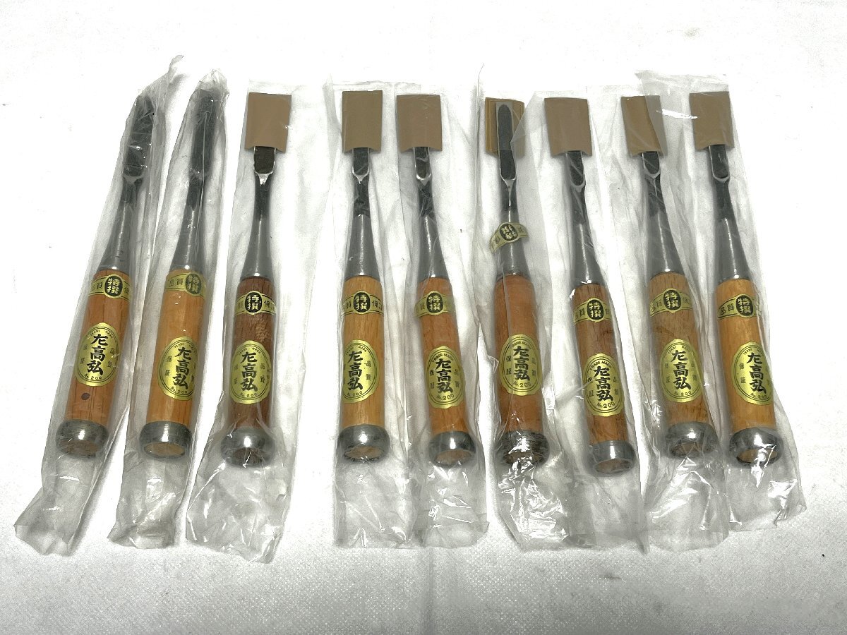 > ▽鑿 のみ 左高弘 9本 全長:約21.7cm~22.5cm 穂幅:約12mm×3本 穂幅:約9mm×6本 美品▽013880