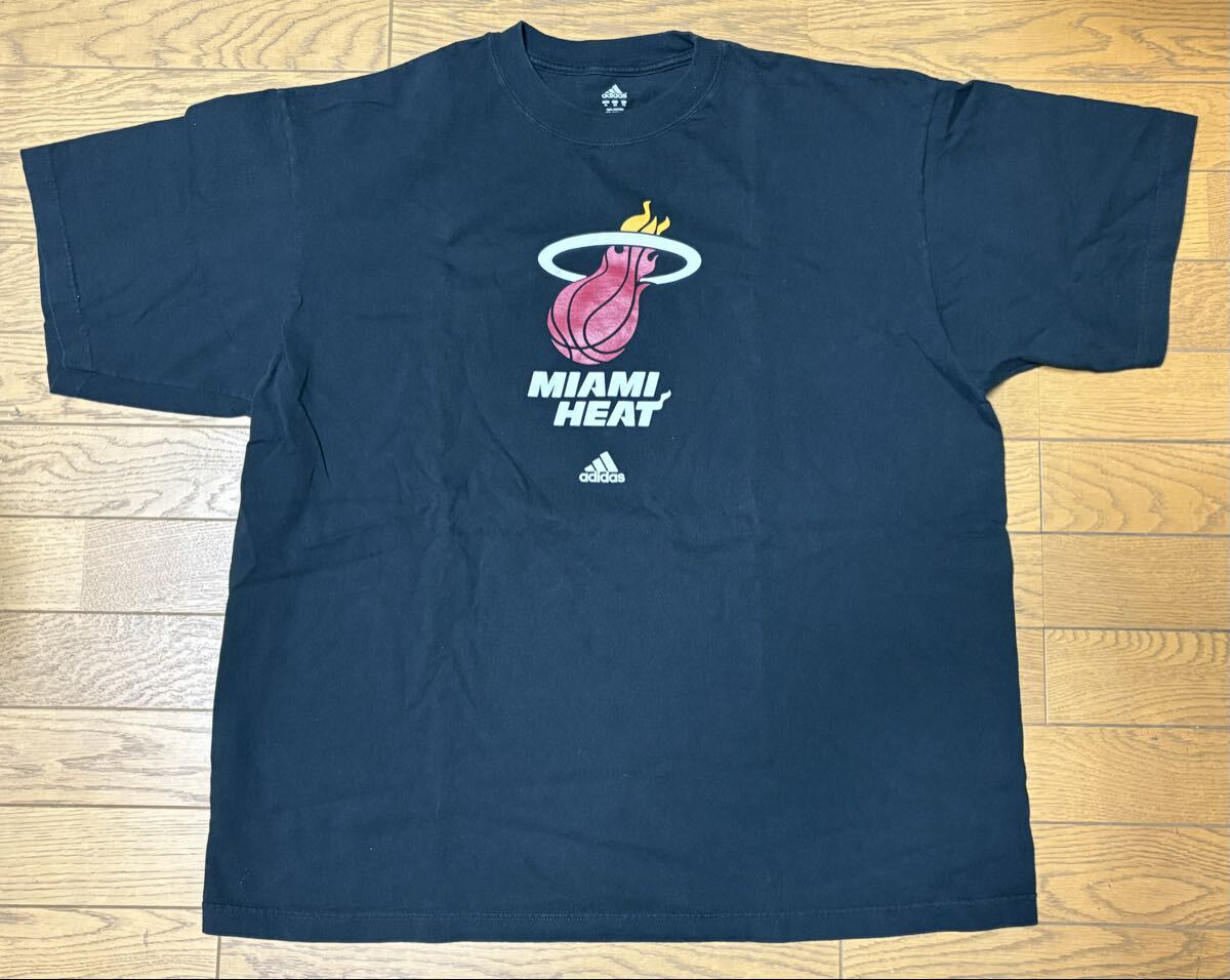 > NBA MIAMI HEAT MEN’S SHORT SLEEVE T-SHIRTS (adidas) size-XL(着丈73身幅66) 中古(美品COTTON-100%) 送料無料 NCNR