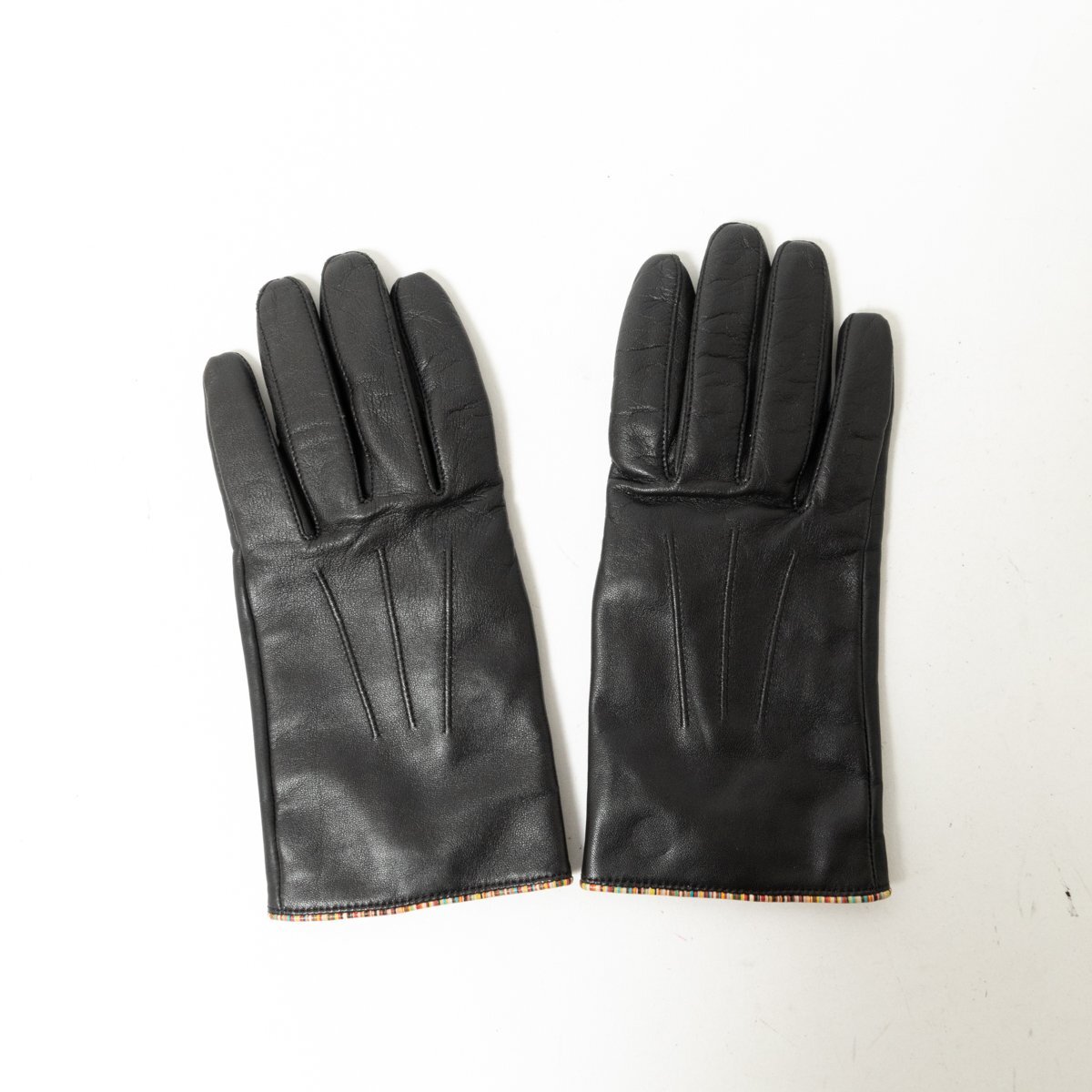 > 【1円スタート】Paul Smith ポールスミス 手袋 グローブ 寸法24cm 260750 レザー 羊革 ラムレザー カシミヤ 防寒 厚手 秋冬 ウィンター