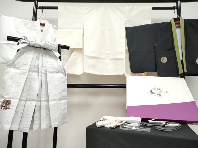 > 平和屋本店■極上 七五三 男の子 3歳 祝着・長襦袢・羽織・行灯袴・草履・小物セット 鳥の子色地 龍 箱付き 逸品 CYAA1971