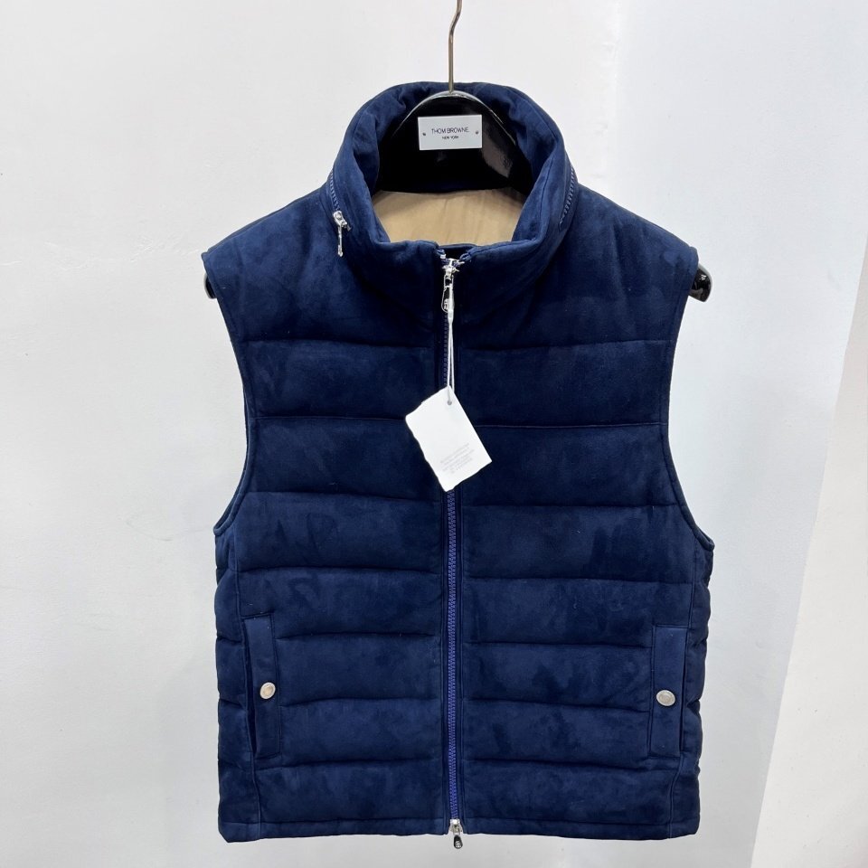 - ネイビーM★送料無料★ブルネロクチネリ★メンズスエード ダウンベスト, 90%ホワイトダックダウン, スタンドカラー, カジュアル