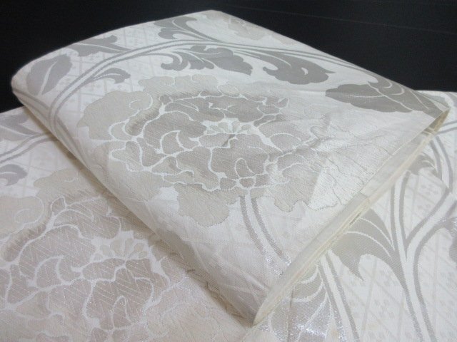 - 1円 中古 袋帯 正絹 和装 和服 アンティーク 牡丹 唐草 菱 お洒落 六通柄 長さ424cm【夢職】★