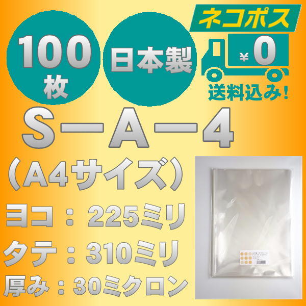 - ☆クリックポスト・ネコポス発送☆ OPP袋A4サイズテープなし30ミクロン 100枚 ☆国内製造☆ ☆送料無料☆