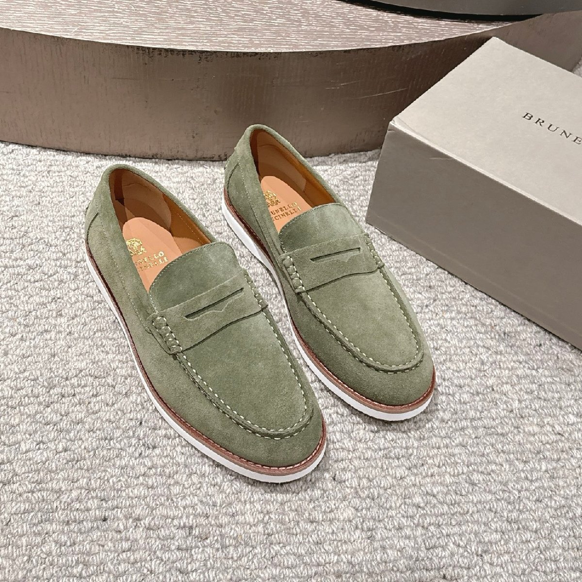 - セージグリーン 26.5cm ★送料無料★ブルネロクチネリ★メンズスエード ペニーローファー, ホワイトソール, カジュアルシューズ