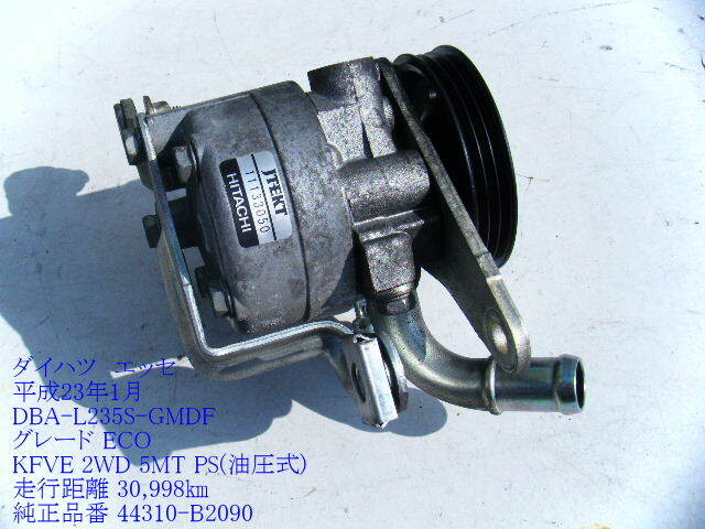 > ◆L235S ダイハツ エッセ H23年 パワステポンプ ベーンポンプ KFVE 5MT 走行距離 30,998㎞ 油圧 HITACHI製 44310-B2090 純正 [14276]