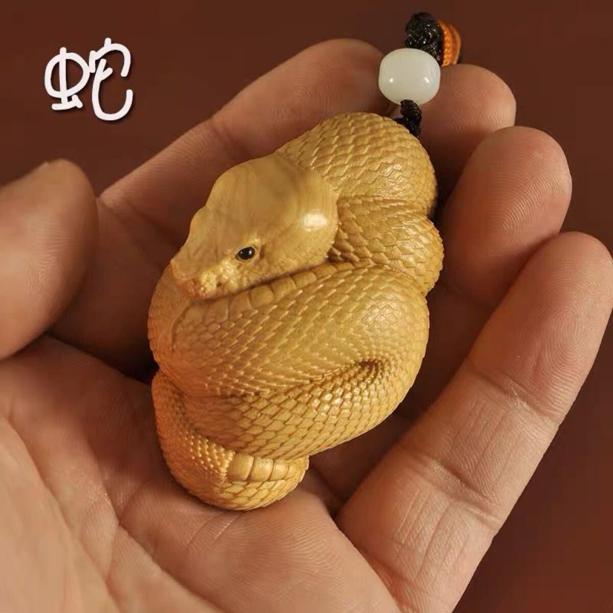 - 送料無料 天然木彫り 仏教美術 古美術 縁起物 蛇 置物 根付 木彫り 掛け物 彫刻工芸品 美術 金運アップ 小物 サイズ6cm 古美術