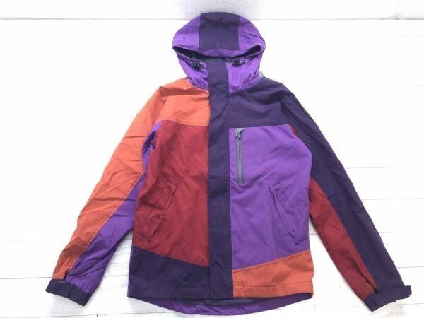 > ジーユー GU アメカジ アウトドア レジャー 配色切替 クレイジーパターン マウンテンパーカー ジャケット メンズ 綿混合 S オレンジ紫赤
