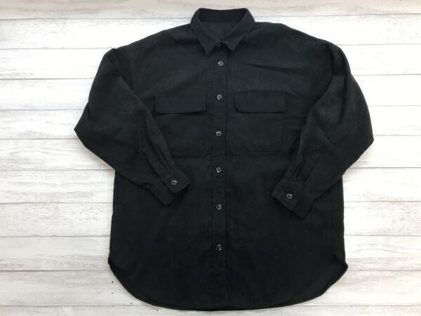 > GU ジーユー レトロ カジュアルモード 古着 ややストレッチ ビッグシルエット コーデュロイ シャツ ジャケット レディース L 黒