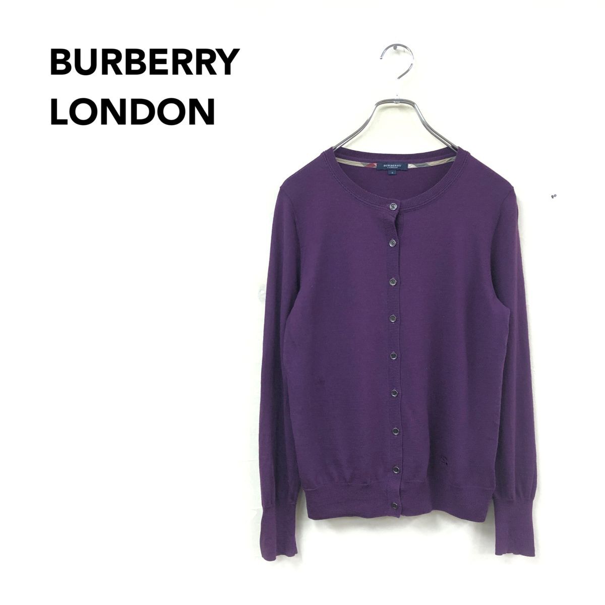 > 2O3223-K◆BURBERRY LONDON バーバリーロンドン 長袖ニットカーディガン◆size4 パープル 薄手 ウール イタリア糸 カジュアル レディース