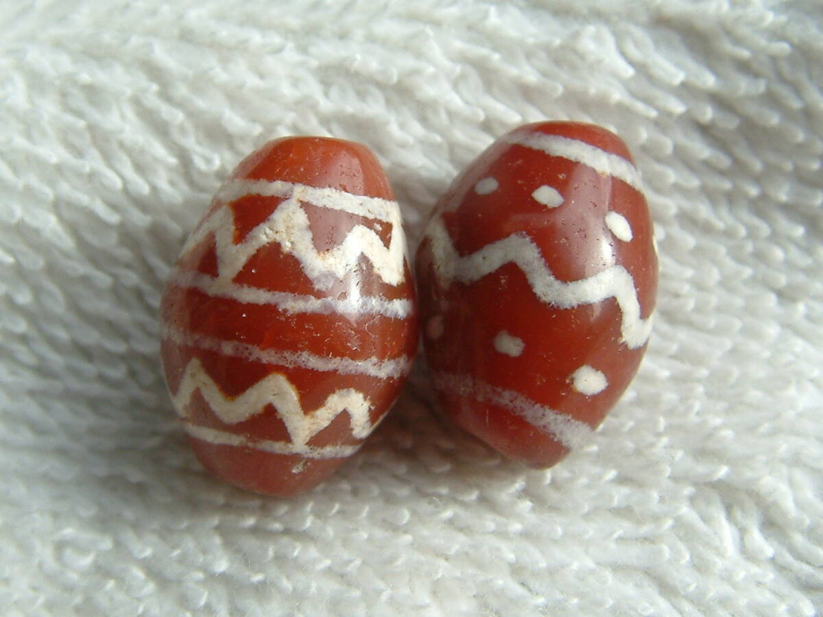 - 920【天珠八仙】〈作成に/エッチドカーネリアン〉..(小型現代)古代密教型図案天珠..約1.5㌢×2個で、