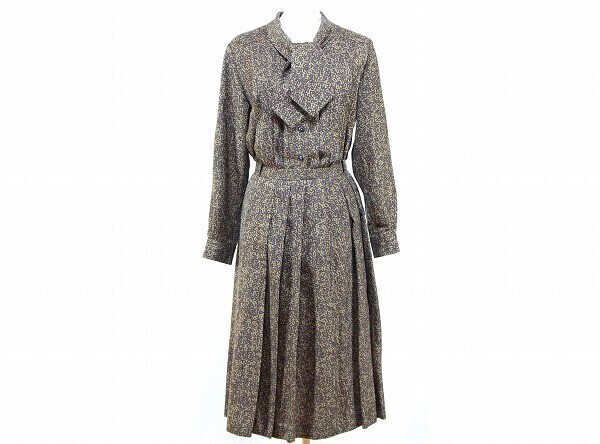 - レリアン Leilian 綺麗め セットアップ シャツ トップス ブラウス ボウタイ 長袖 ロングスカート 総柄 9 茶 ブラウン レディース [898389]