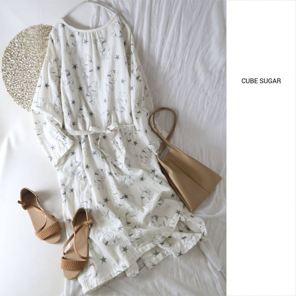 > キューブシュガー CUBE SUGAR☆洗える 綿麻スターベア刺繍前後着用可2WAYワンピース Mサイズ☆M-S 4877