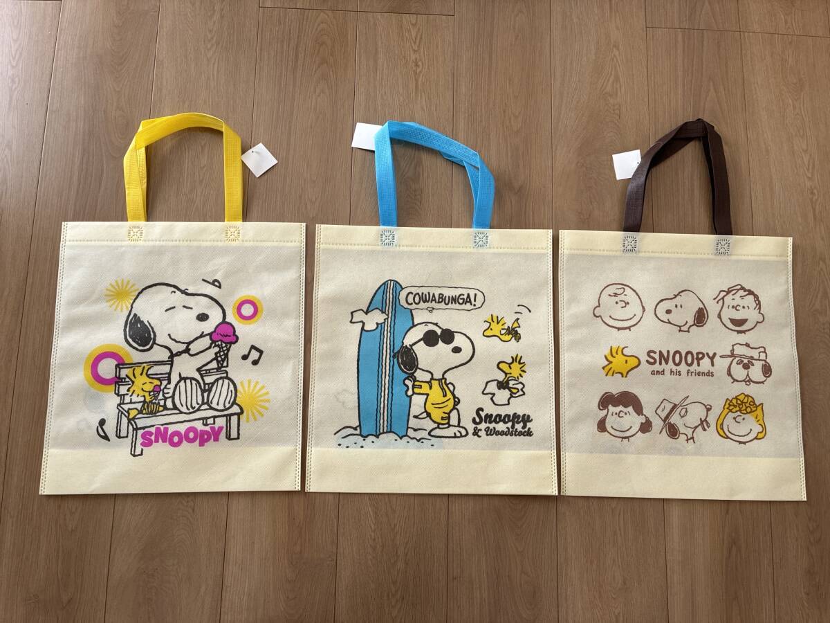 - タグ付き未使用品★Snoopyピーナッツスヌーピープリント不織布トートバッグ3点セット