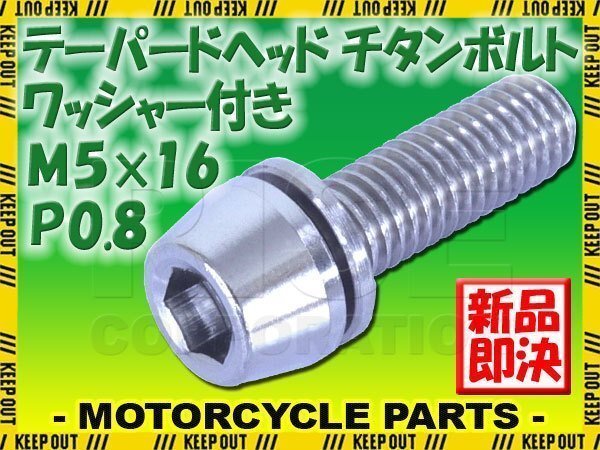> メール便OK!M5×16 P0.8 チタンボルト 1本 5mm 16mm ピッチ0.8 ワッシャー付き シルバー テーパー ボルト ステム バイク 車 自転車 ネジ