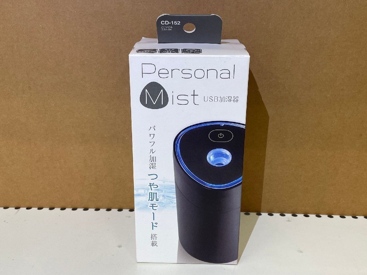 未使用・長期在庫品につき、アウトレット品扱いにて出品致します。アウトレット品の為、申し訳ございませんが、保証はございません。・商品名: パーソナルミストUSB加湿器 ブラック・内容物:加湿器本体(給水芯x1本、本体にセット済み。画像6)x1、取扱説明書x1、交換用給水芯x1本、USBケーブルx1・本体サイズ:幅(上部、操作部側外径)60mm・(下部、底側外径)70mm、高さ134mm※USB(タイプA接続)対応充電機器は、別途ご用意ください。・加湿機能:2モード(通常モード・画像9:弱/つや肌、ハイパワーモード・画像10:強)・(本体上面)モードお知らせランプ機能:停止状態(通電中)=白色ランプ・画像8/通常モード=青色ランプ・画像9/つや肌、ハイパワーモード=緑色ランプ・画像10☆USBポートに接続するだけなので、車内はもちろんデスク周りでも使用が出来ます。・画像に表示しきれなかったキズ・汚れがある場合がありますが、アウトレット品と言うことをご理解、ご了承の上入札をお願い致します。・神経質な方、細かい事を気になる方、完璧を求められる方申し訳ありませんが、入札はご遠慮下さい。