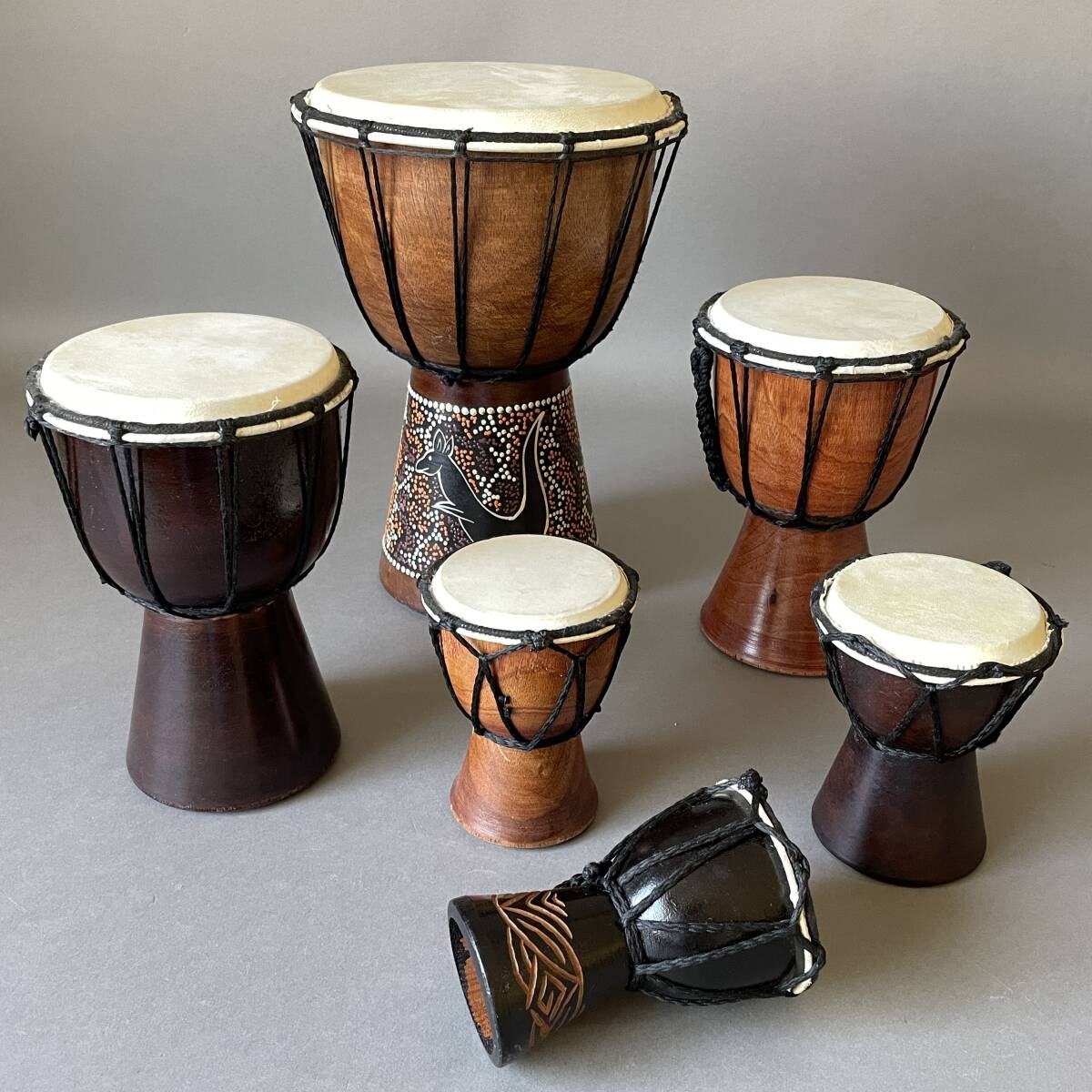 - MS3550 民族楽器 ミニジャンベ 高さ:約29〜12.5cm 6点 まとめて 西アフリカ アフリカドラム (検)打楽器 マホガニー パーカッション リズム