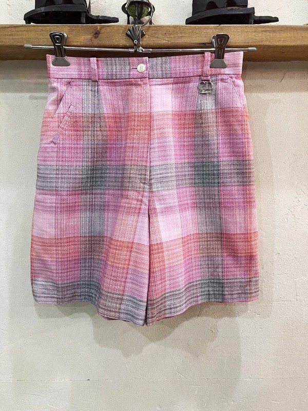 - 1734★ChristianDiorSPORTS/クリスチャンディオール チェックハイウエストショートパンツ ピンク レディース Lサイズ ゴルフウェア★