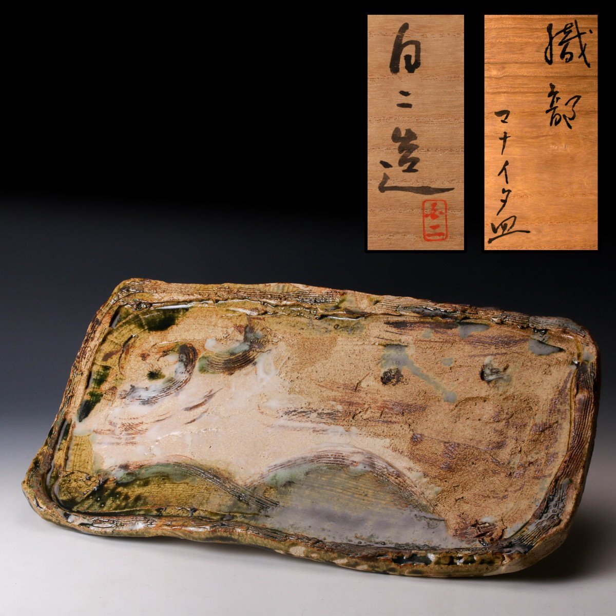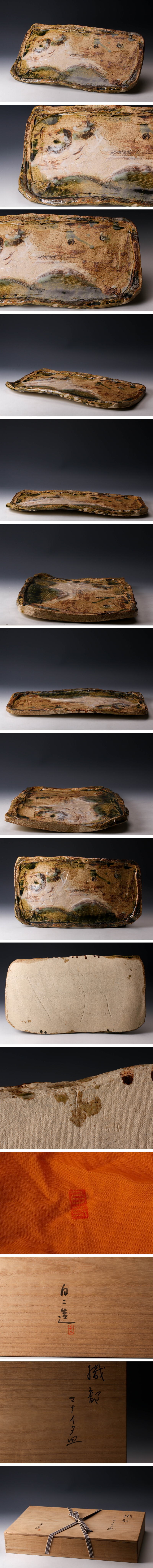 【佳香】高橋白二 幅48cm 織部俎板皿 共箱 共布 本物保証(師:北大路魯山人)