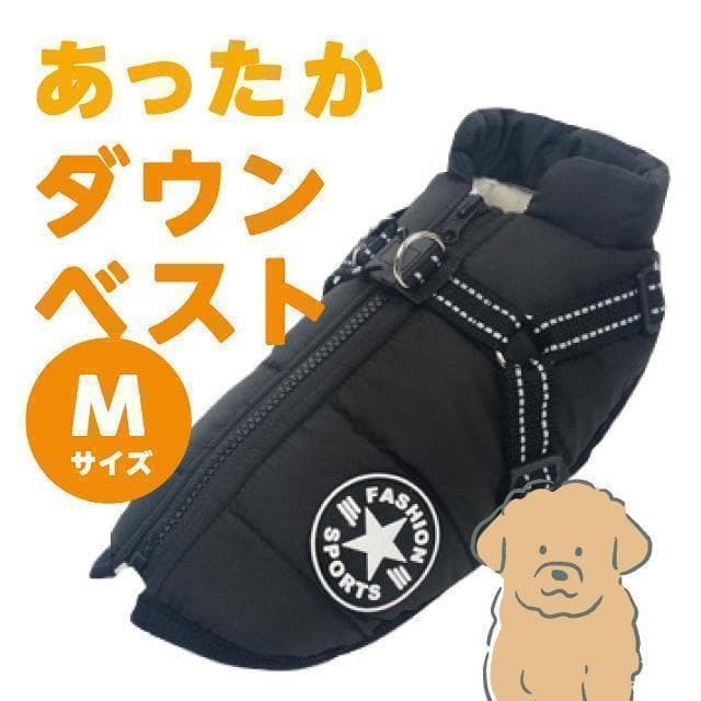 - 犬の服 ワンちゃんダウンベスト 黒 Mサイズ ハーネス兼用 ドッグウェア 犬服