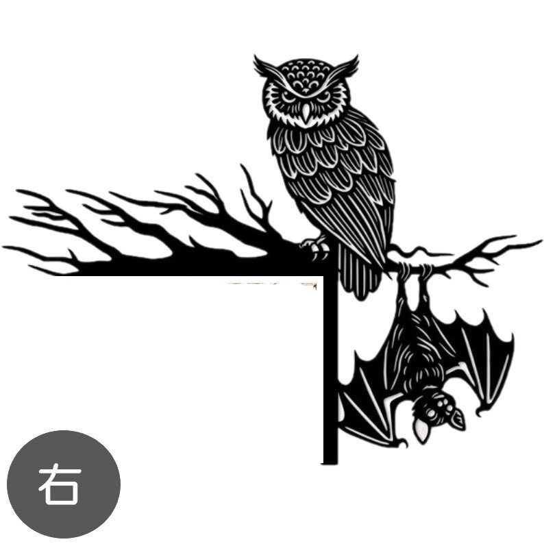 > ドア オーナメント フクロウとコウモリ 30cm 右 雑貨 置物 園芸 ガーデン オブジェ 梟 ふくろう ミミズク 蝙蝠 n920