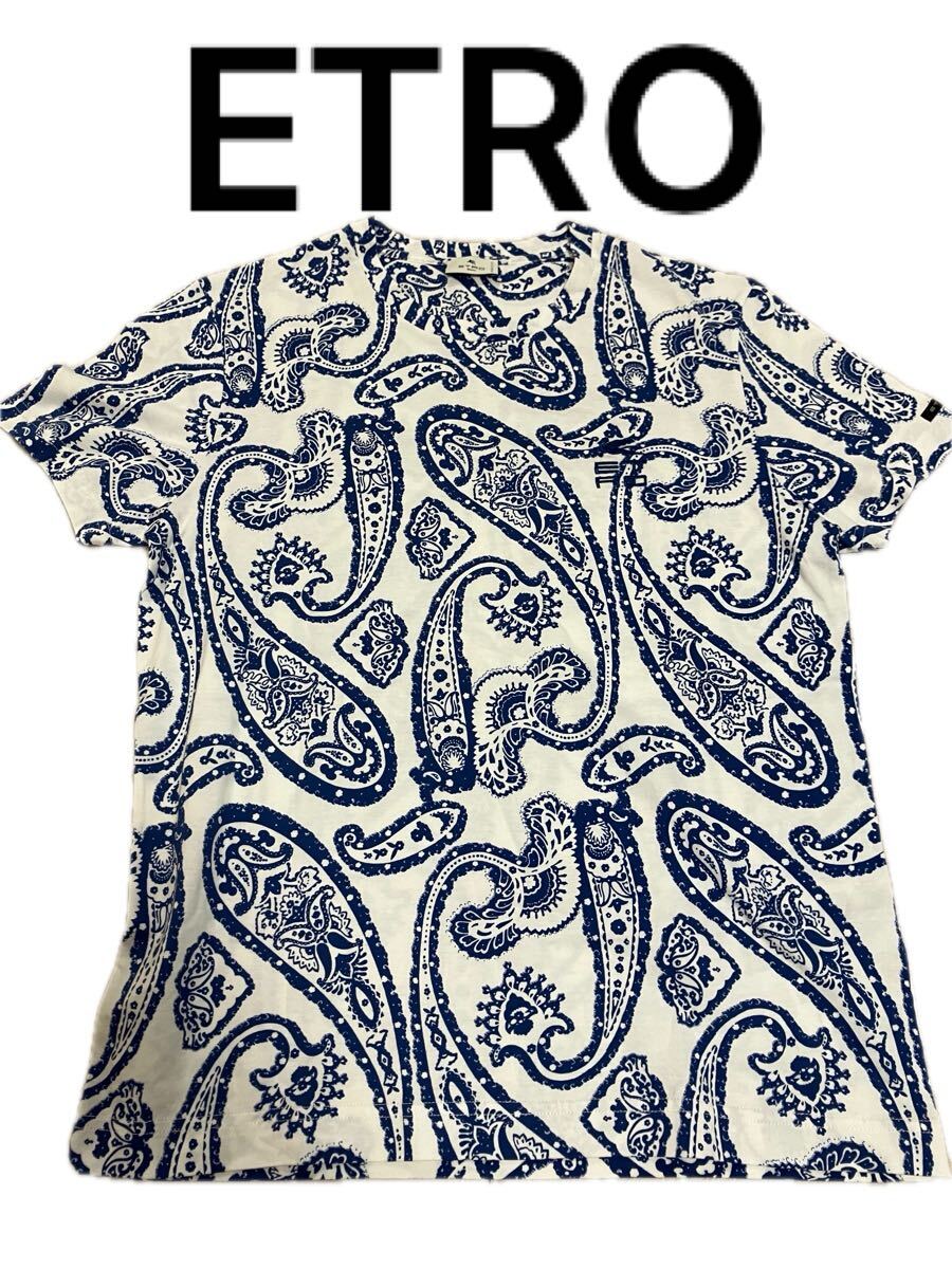- 美品 ETRO エトロペイズリー柄 半袖 ロゴ刺繍 Tシャツ イタリア製 トップス ペイズリー総柄