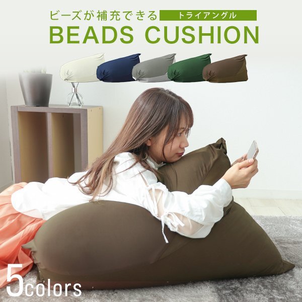 > トライアングル ビーズクッション【ブラウン】補充ビーズ付 三角 クッション 人をダメにする 背もたれ ソファ 座椅子 在宅 ストレッチ 腰痛