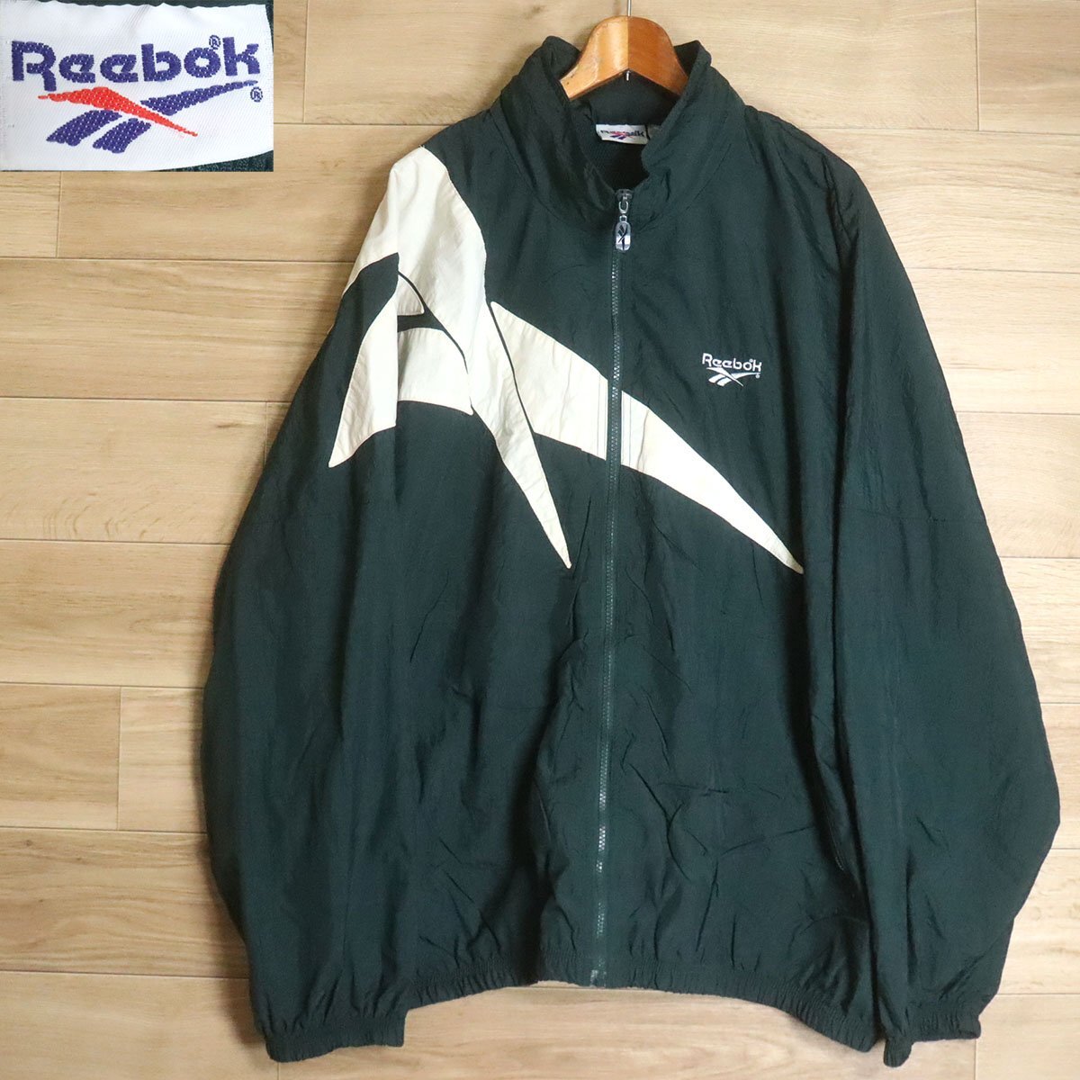 - A7S/R4.11-2 90s Reebok リーボック ナイロンジャケット ウィンドブレーカー 収納フード ジャンパー ブルゾン 2XL XXL グリーン