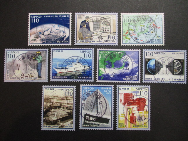 - 使用済 気象業務150周年 離島局/改称局/777日並び 満月印含10種