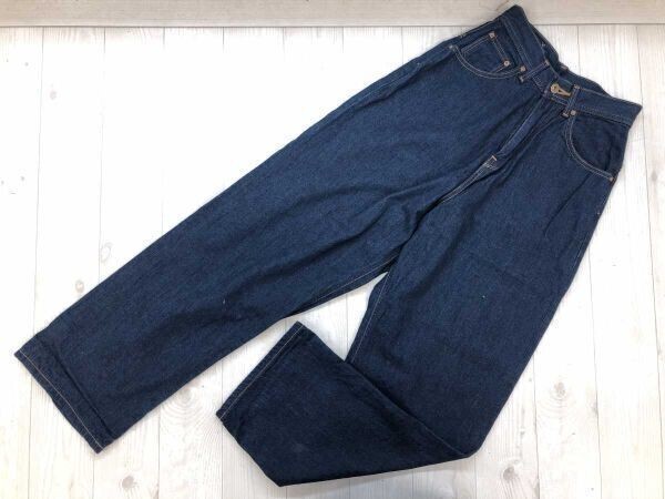 - リー Lee アメカジ 古着 ハイウエスト テーパード ワンウォッシュ デニム パンツ ボトムス ハラコパッチ レディース コットン100% XS 紺