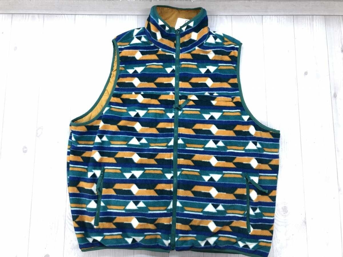 > 新品 ハルハム HALHAM レトロ アウトドア リバーシブル 幾何学模様 総柄 パイピング ベスト メンズ ポリエステル100% L マスタード/緑系