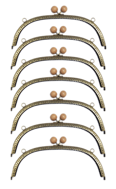 - HK 木製アメ玉 がま口 口金 24.5センチ 20ミリアメ玉 アンティークゴールド 7個セット