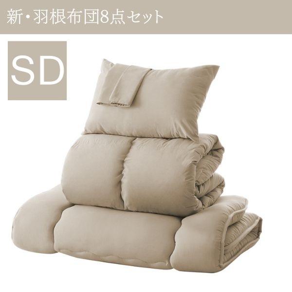 - 3年保証 新・羽根布団8点セット 和タイプ セミダブル モデレートグレージュ