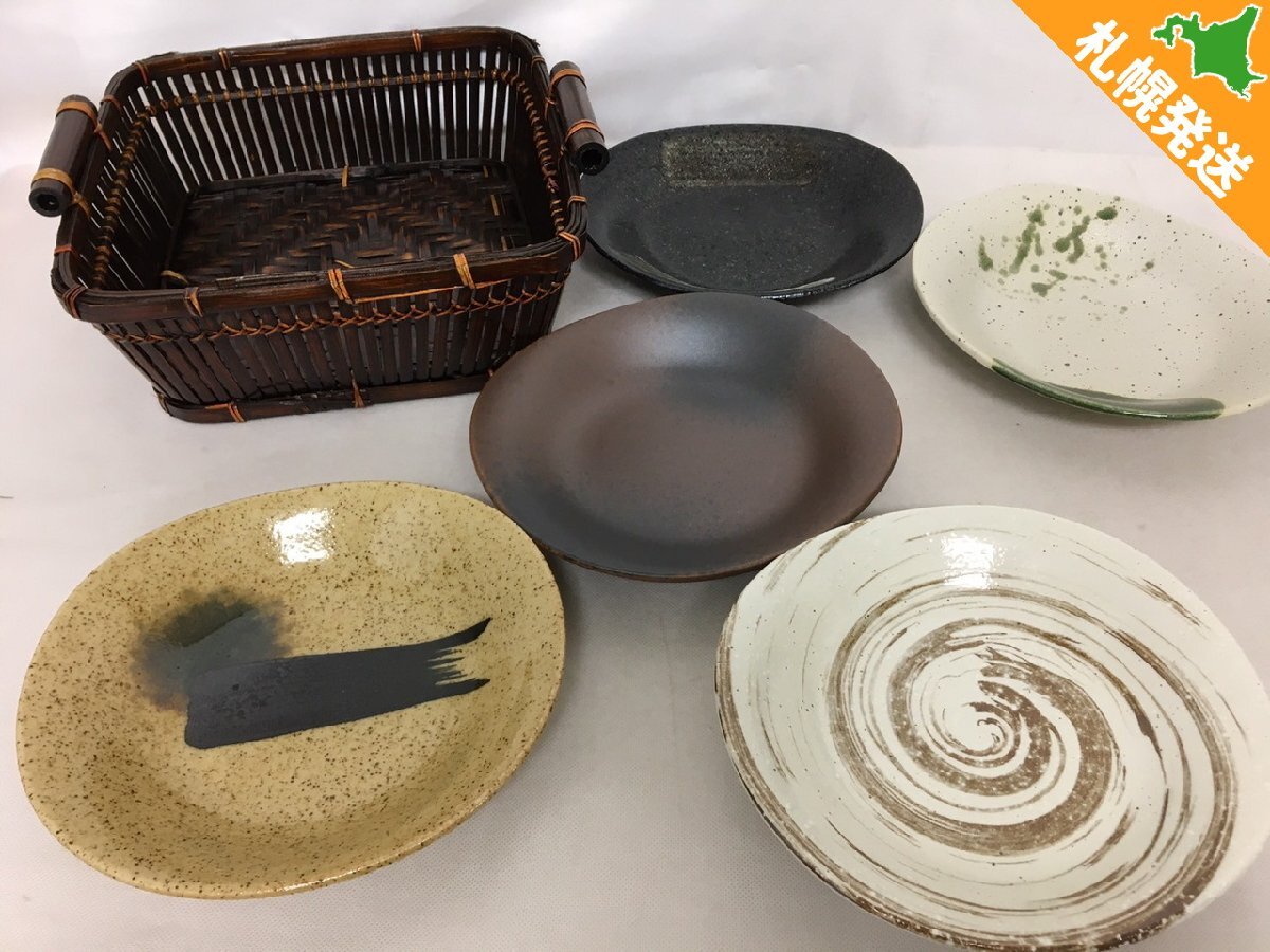 - 【R1-00754】未使用 大地の宴 カゴ付き カレー皿 5点 セット 大皿 籐編み 小物入れ かご 籠 編み 箱付き【千円市場】
