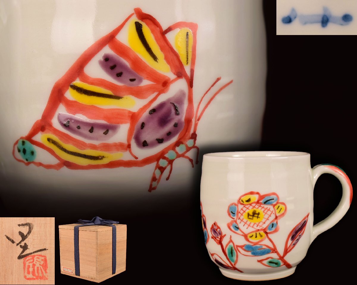 U716 【泉美】北村堅治作 色絵 マグカップ 共箱入拍卖