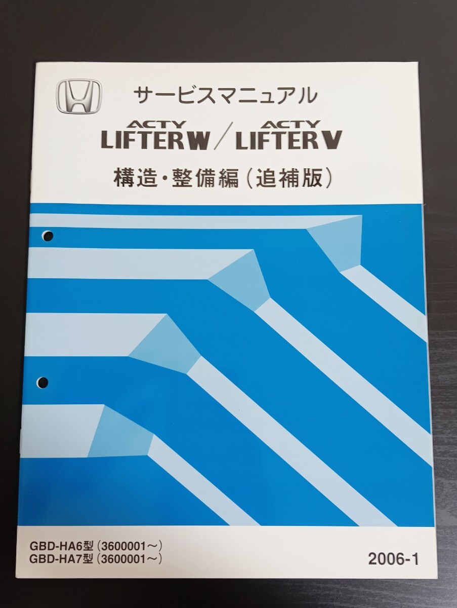 - A9 ホンダ ACTY LIFTER W/LIFTER V アクティリフターW/V サービスマニュアル 構造・整備編(追補版) 2006年1月