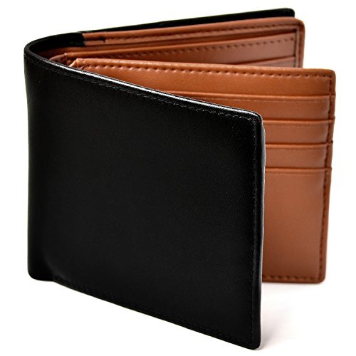 - [ルスリール] 二つ折り 財布 本革 大容量 カード 18枚収納 新設計のボックス型小銭入れ メンズ (ブラック×ブラウン).