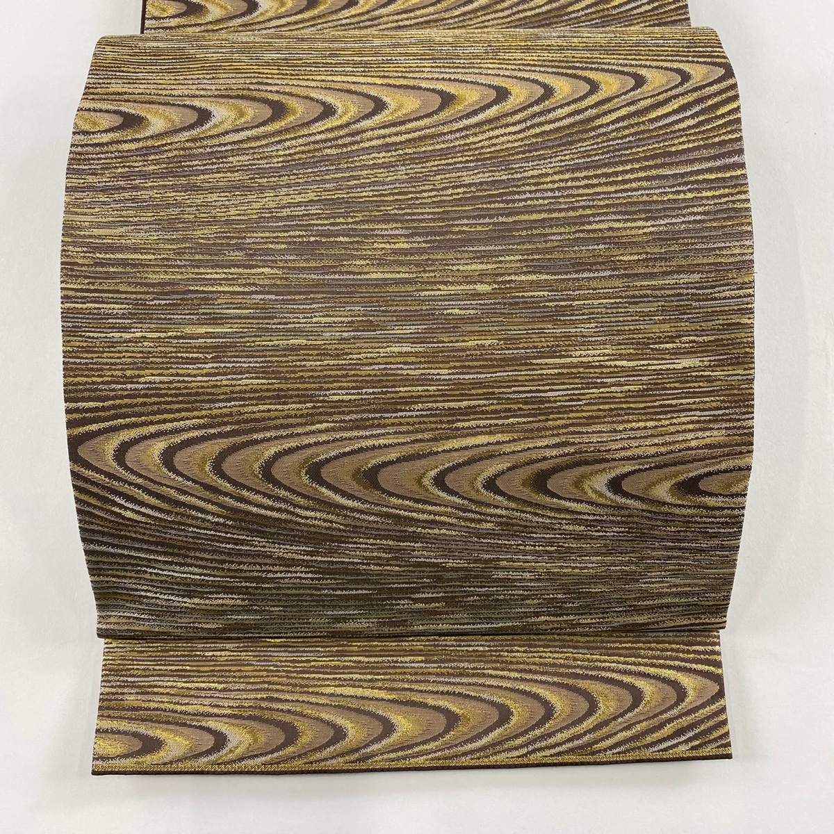 > 【美品】 袋帯 名品 箔屋清兵衛 落款 草木染 木目 箔 茶紫 六通 正絹 【中古】