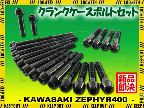 > チタンボルト カワサキ ゼファー400専用 ZR400C クランクケース エンジンカバー ボルト セット 19本 ブラック 軽量化 カスタム